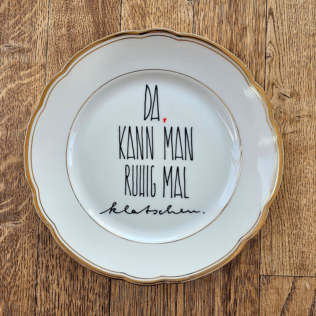 Alte Schätze mit neuen Worten – das ist meine Leidenschaft. Ich hauche alten Porzellantellern neues Leben ein, indem ich sie mit inspirierenden Zitaten, liebevollen Botschaften oder humorvollen Sprüchen versehen. Jedes Stück ist handbeschrieben und ein Unikat.